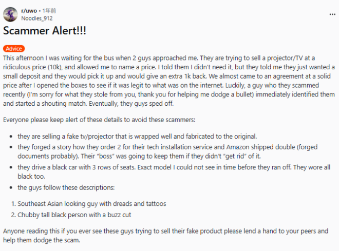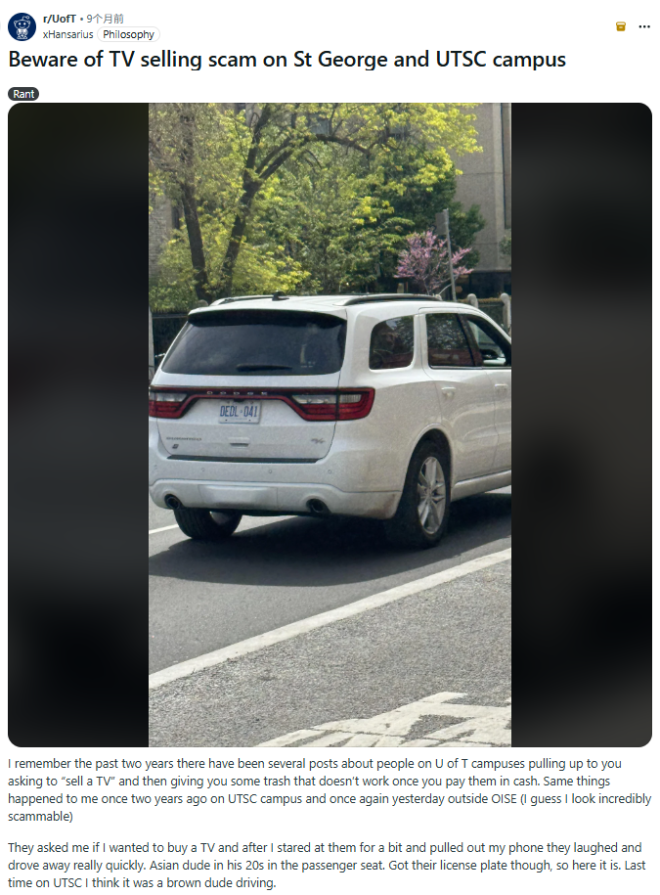 在Reddit的r/UofT板块一则2025年5月的帖子中,已有多名学生反映,过去两年在St. George、UTM和UTSC校区都遇到过类似骗局。