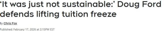 面对学生的不满,安省省长福特周二在省议会表示:“各位,这个项目已经处于赤字状态,根本不可持续,而且整个高等教育领域都在告诉我,这种情况无法持续下去。”