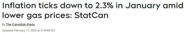 加拿大统计局发布的1月通胀报告,是加拿大央行在上个月将基准利率维持在2.25%之后首次获得的通胀数据。