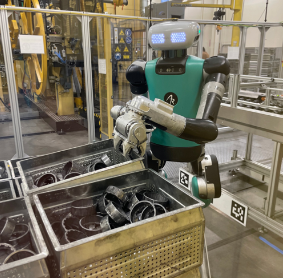 “Digit会把空箱从牵引车上拿下,然后再把装满零件的箱子放回去。”