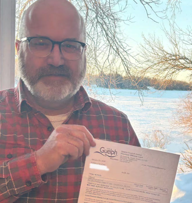 Klicka上世纪80年代曾住在圭尔夫,如今住在靠近渥太华的Jasper。Klicka完全不记得自己收过这张罚单。
