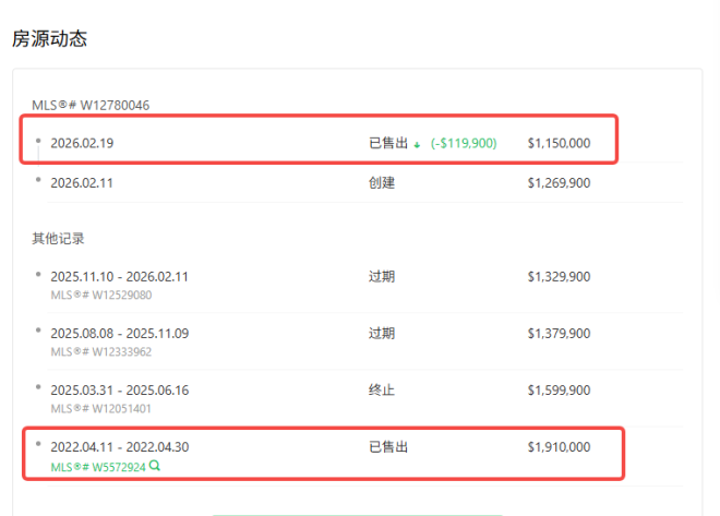 51找房数据显示,该房产最初于2020年9月以1,199,000加元售出,并于2022年4月再次以191万加元被购买。