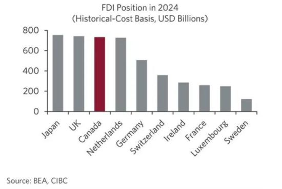 這一規模使加拿大在全球對美投資排名中位居前列,遠超許多經濟體量比加拿大大得多的國家。