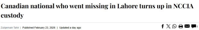 根据巴基斯坦媒体报道,加拿大公民Hamza Ahmad Khan于2月19日在拉合尔失踪。他自2月13日抵达巴基斯坦后,一直住在朋友家中。