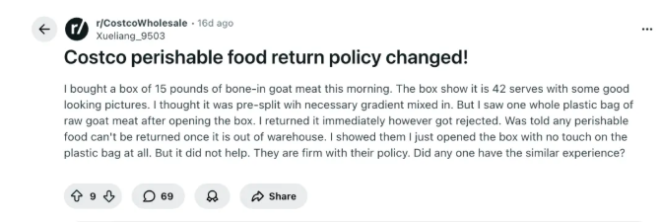 另一位Reddit用户抱怨称,生鲜食品的退货政策也变了。