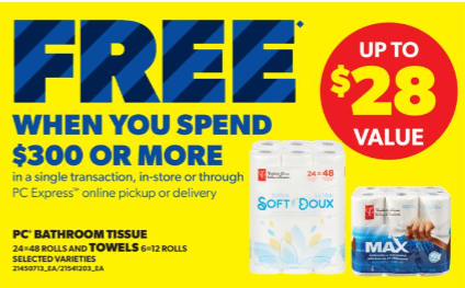 消费满$300送24卷厕纸+6卷厨房纸(价值$28)!