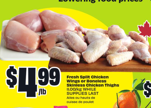 去皮鸡腿肉、鸡翅$4.99/lb!