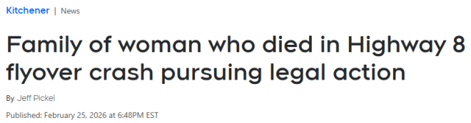 一个月之前,安省一名女子在基奇纳(Kitchener)8号公路(Highway 8)立交桥的匝道冲出道路、坠落身亡。如今,她的家人仍在寻找真相,也希望有人为此负责。