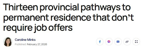 加拿大13个省提名移民途径,无需Job Offer也能拿PR