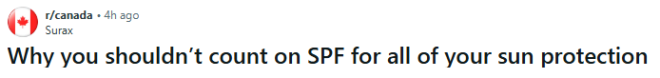 这意味着,那些完全依赖防晒霜来保护自己的加拿大人,可能只是“心理上安心了”,却未必真的有那么强的防护。