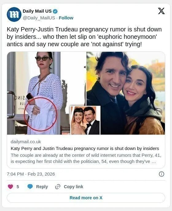 这对情侣自去年夏天在蒙特利尔被拍到一起共进晚餐后,便成为国际媒体关注的焦点。近日,有媒体报道称,有关凯蒂怀孕的传闻并不属实,并称两人目前正处于一种“蜜月阶段”,享受彼此陪伴,以及与各自此前关系中已有的孩子共同生活的时光。