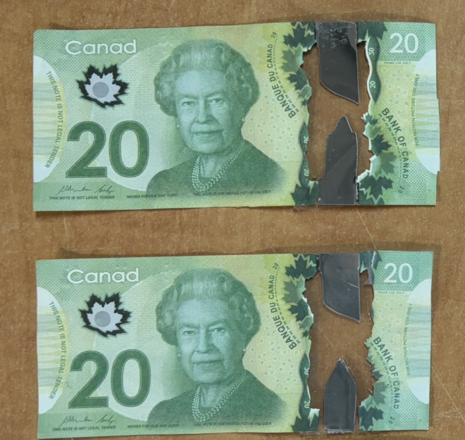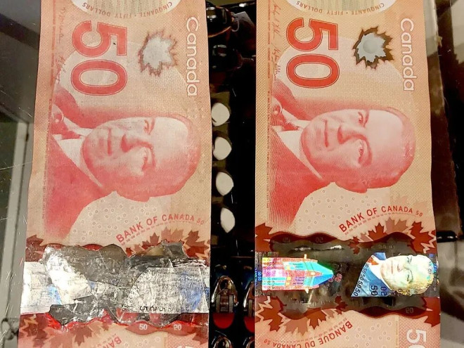 还有一个容易被忽略的细节——凸起印刷。用手指摸一摸钞票上的头像、数字和“Bank of Canada”字样,真钞有明显的立体触感,假钞往往是平的。
