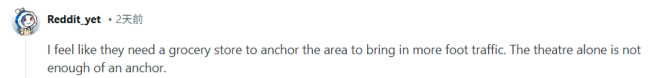 “我觉得这个区域需要一家超市来带动人流。光靠一家电影院还不够。”