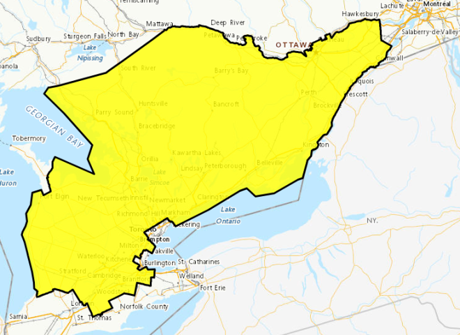 加拿大环境部发布严寒警告,一股极冷空气正席卷安省南部大部分地区,不过多伦多未被列入警告范围。