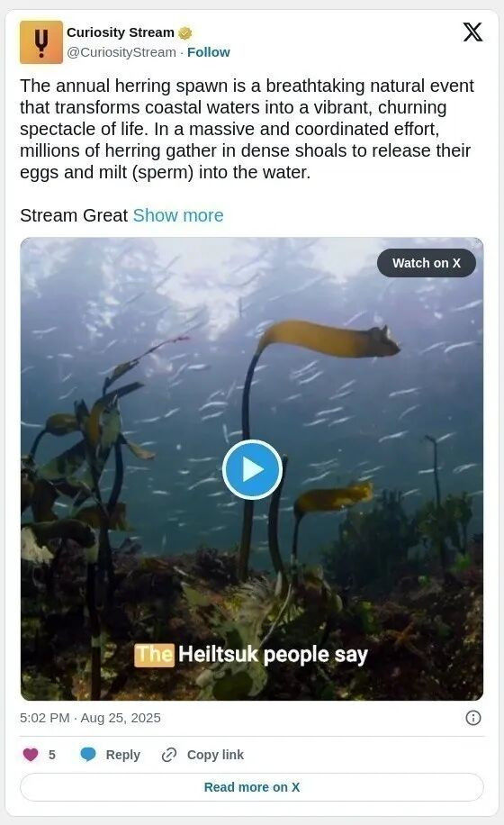 根据V.I.A.的报道,海洋环保机构Ocean Wise渔业与海鲜科学专家斯科特·麦基尔文(Scott McIlveen)表示,鲱鱼在西海岸食物链中具有“基础性”地位。