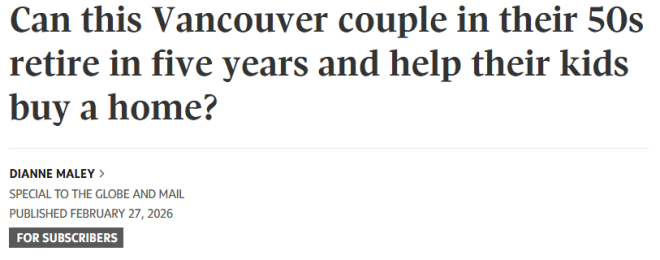 加拿大一对50多岁的夫妇年收入36万加元,希望在5年内、环游世界、并给两个孩子各50万加元首付款买房,他们做得到吗?