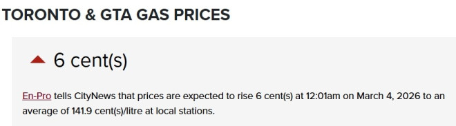 大地区(GTA)的司机周三将看到明显上涨。