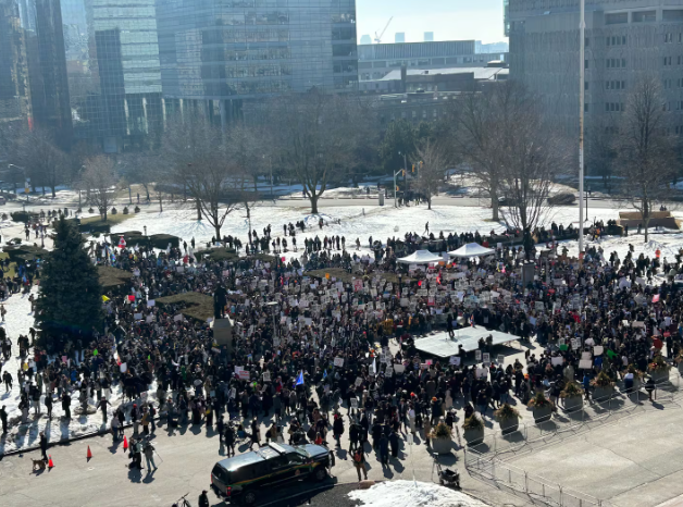 今天(3月4日),数百名学生聚集在多伦多省议会大楼(Queen’s Park)外,抗议安省政府对学生贷款计划(OSAP)所做的改革。