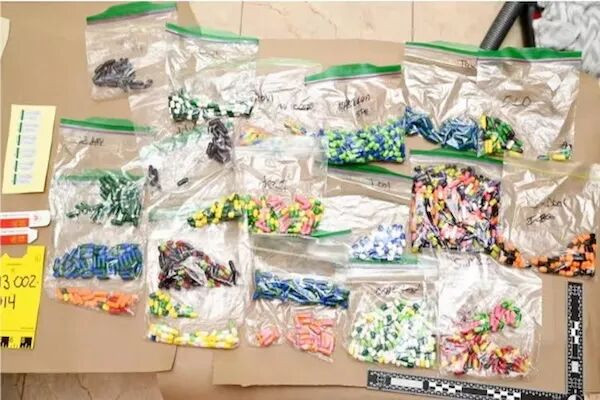 调查显示,家住Blainville的Perreault将车库改造成药物生产基地。警方在现场查获压片机、装袋机、成千上万的胶囊、药瓶与包装材料。有部分产品被装在印有其牙科诊所标识的盒子中。