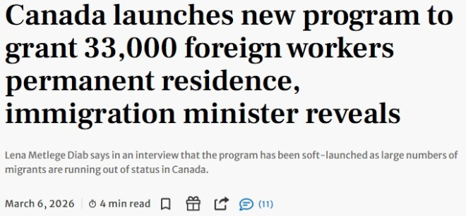 联邦政府已悄然启动一项承诺中的新项目,帮助部分现有工签持有人转为永久居民(PR)。部长Lena Metlege Diab表示,此举是在越来越多移民在加拿大身份即将到期的背景下推出的。