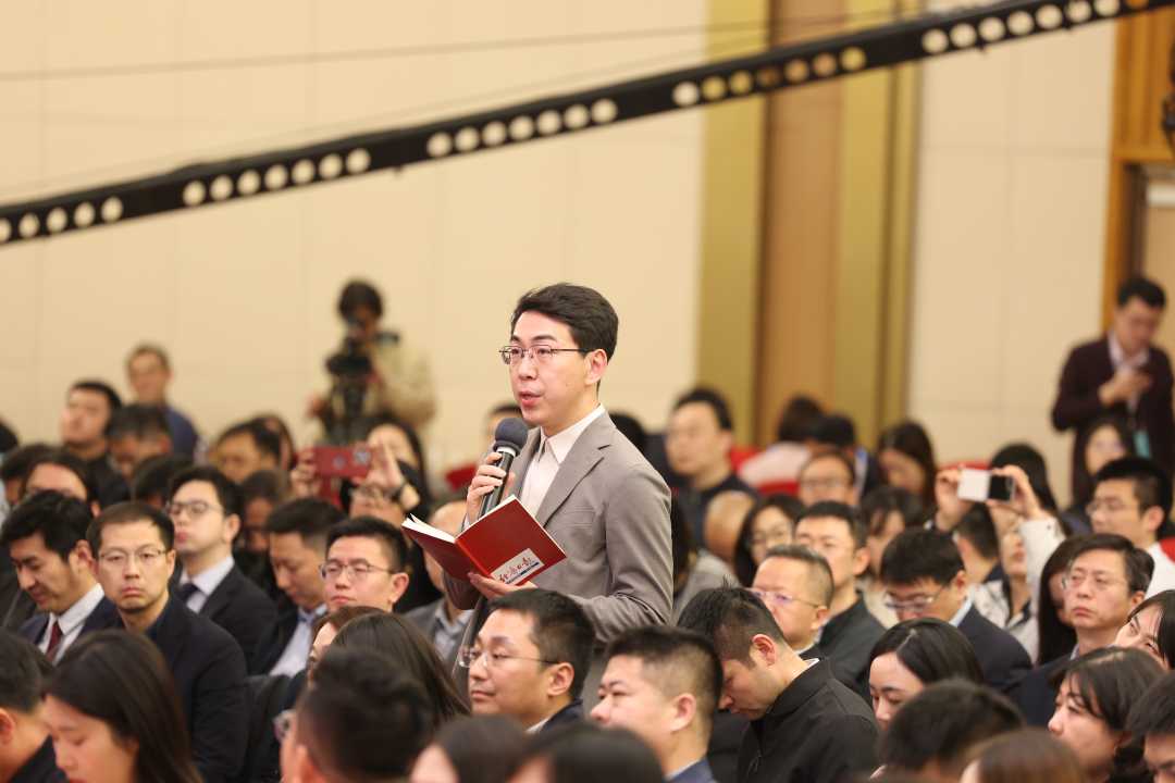 经济日报记者马春阳在现场提问。经济日报记者高兴贵摄