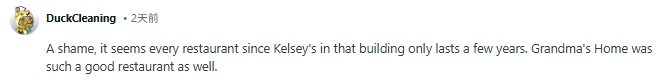 “真可惜,自从Kelsey’s餐厅搬走后,这个位置开的餐厅似乎都撑不了几年,上一家外婆家私房菜其实也很不错。”