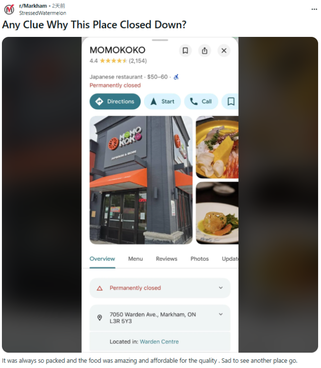对于许多生活在万锦和大多伦多地区的吃货来说,这个消息多少有些突然。毕竟就在不久前,这里还是不少人心中的热门聚餐地。
