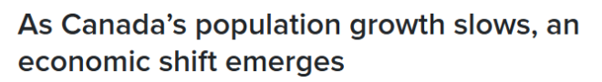 人口增长放慢的影响已经开始在某些领域显现,这距离联邦政府下调移民目标已经一年多。今年预计将是加拿大连续第二年人口零增长,这发生在联邦政府16个月前降低移民目标之后。