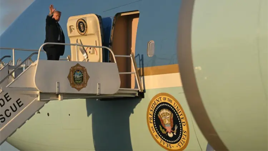 頂圖圖說:3月9日特朗普準備登上總統專機,從佛羅里達州返回首都華盛頓。(法新社)
