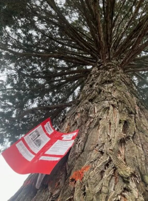 BC Hydro 解释说,移除这棵树是目前唯一“安全且可行的选择”。如果继续施工,工程将对树木关键的根系区域造成严重破坏。