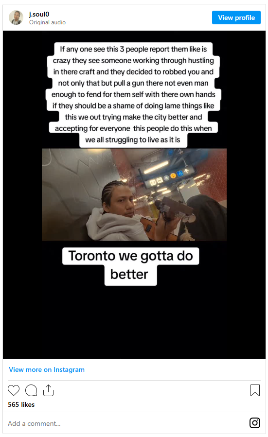 “他只是在TTC地铁站弹吉他,想赚一点额外收入,”她说。“结果却被三名嫌疑人接近,不仅抢走他的钱,还掏出了枪。”