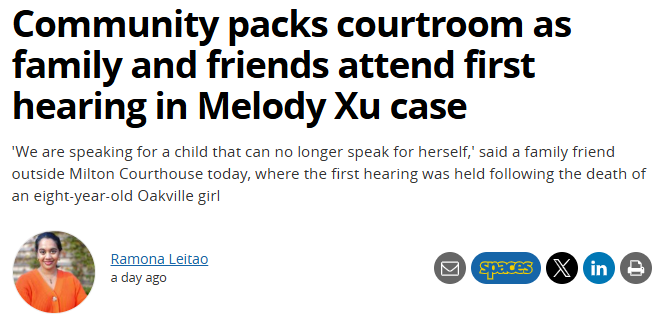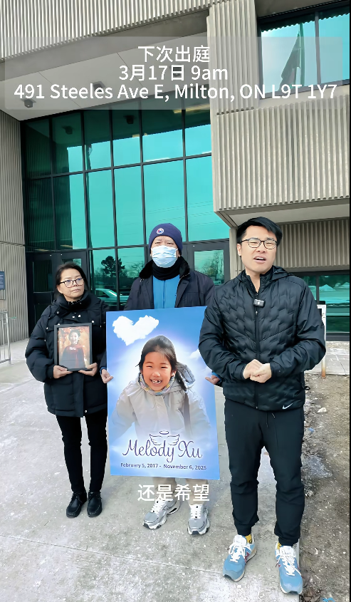 2025年11月在奥克维尔被车撞死的八岁女孩Melody Xu,是一名冰球运动员、音乐爱好者,也是家人的骄傲与心肝宝贝。如今几个月过去,最近第二次开庭审理,但是对方律师表示要提交更多证据,可能要到那时候才能决定是否正式开庭及时间安排。