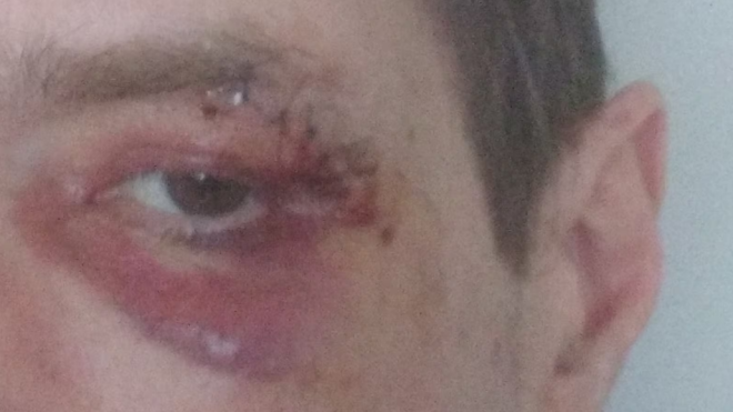 事后,医护人员将Artem送往St.Michael’s医院检查,他左眉下方有一道很深的伤口,需要缝针处理。在他提供给CTV的一张照片中,可以看到眉毛下方仍有粗黑的缝线,以及红色和深紫色的瘀伤。