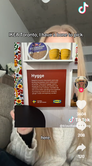 在视频中,Lennerling表示她“有点想吐槽一下”宜家,并称自己在多伦多市中心门店的体验让她觉得“哪里都不对劲”。