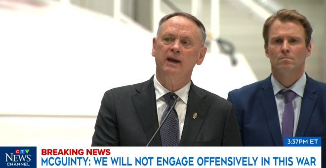 在声明发布前不久的新闻发布会上,McGuinty再次表示,加拿大在战争爆发前并未被征询意见,也无意参与战争。但他并未排除加拿大军事介入的可能性。