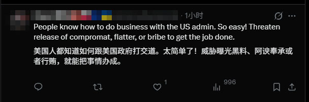 也有网友发现,拍马屁确实是与特朗普打交道的“诀窍”。