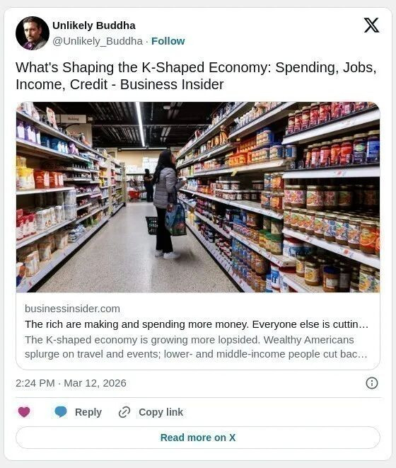 所谓“K型经济”(K-shaped economy)用来描述经济复苏或发展过程中出现严重分化,指高收入群体仍能维持甚至增加消费,而低收入群体购买力下降,被迫削减支出。