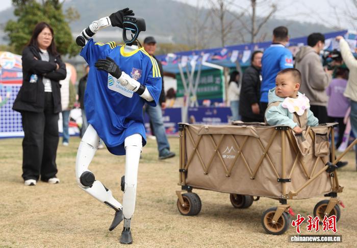 图为身着南京队球衣的机器人展示舞技。记者 泱波 摄