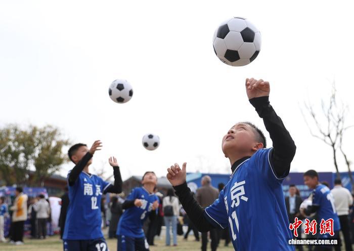 图为小球员展示球技。记者 泱波 摄
