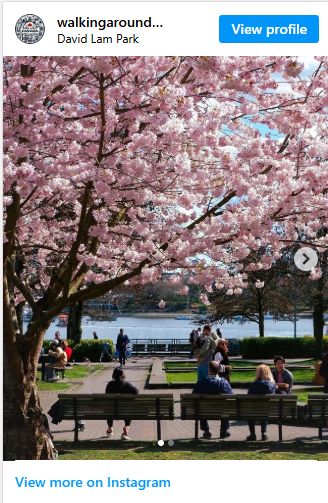 斯坦利公园里很多地方都有盛开的樱花树,尤其是玫瑰园(Rose Garden)怒放的樱花,每年春天都吸引很多民众来打卡拍照,赏花后再去海堤(Seawall) 走走,看看海景,吹吹海风,好不惬意。
