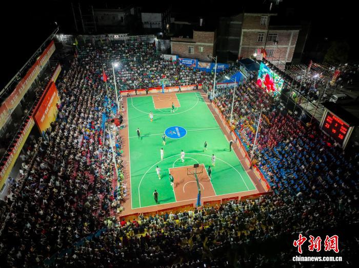 玉林3月28日电 (黄令妍)3月27日晚,“体彩杯”第九届广西万村篮球赛总决赛在玉林市兴业县蒲塘镇开赛。来自广西14个设区市的14支乡村冠军代表队以小组循环+淘汰赛的赛制,展开为期三天的激烈角逐,各组前两名晋级复赛,最终决出广西乡村篮坛年度总冠军。