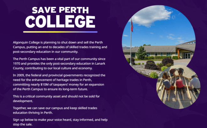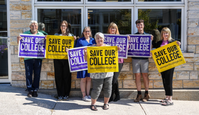 在渥太华外一个多小时车程的地方,安省珀斯小镇(Perth)的路边和商店橱窗里,到处都贴着“拯救我们的学院(Save our College)”的标语。