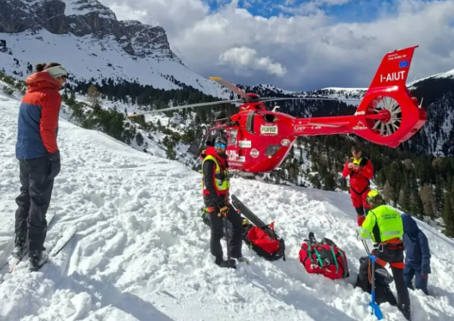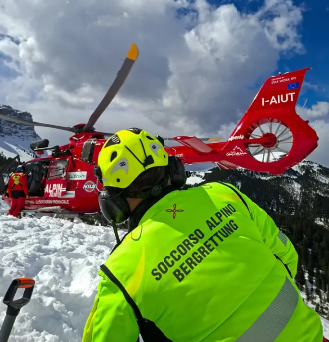 接到报告后,意大利国家高山与洞穴救援队(CNSAS)迅速展开行动,联合高山救援直升机,在地形复杂、坡度陡峭的雪山区域完成了遗体转运工作。。
