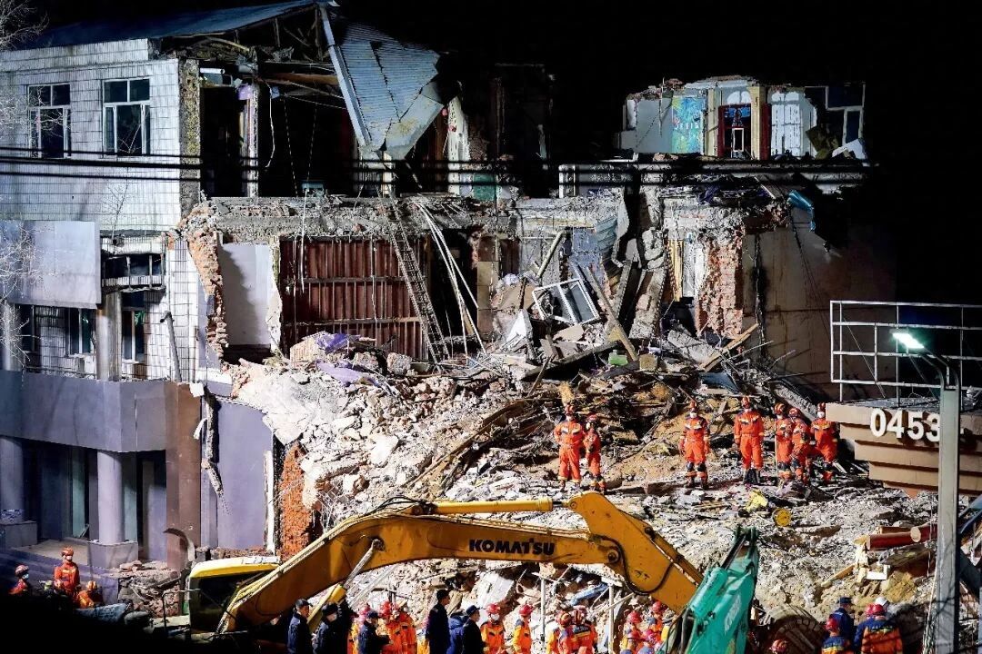 她跑下楼才发现,是附近的楼坍塌了,现场弥漫着灰尘,有人被埋在其中。之后是整夜未眠,一辆辆消防车、救护车进出,身穿橙色和蓝色服装的救援人员协同机械进行搜救。