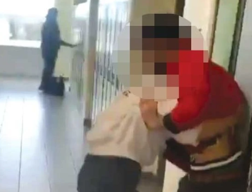 视频最初显示,两名男学生在学校走廊内激烈打斗,其中一人对另一人头部进行了连续猛击。