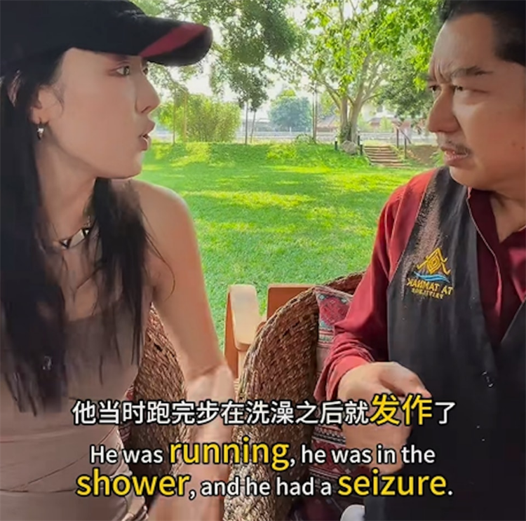 頂圖圖說:比利(右)接受大陸網紅「清邁小羊羊」訪問,回憶鄧麗君去世當天的經過。
