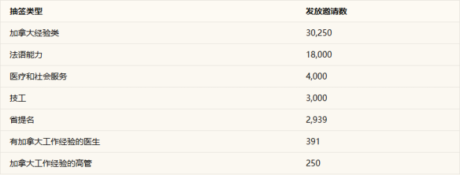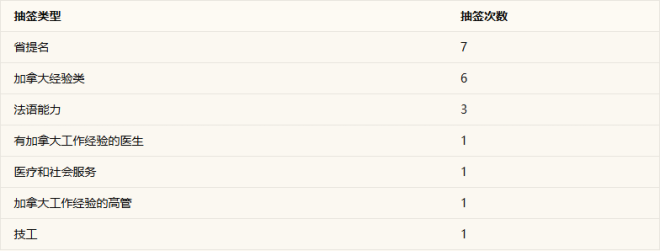2026年Express Entry抽签汇总表: