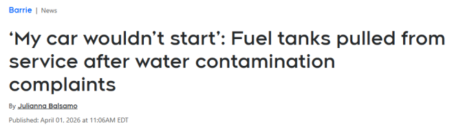 TSSA向 CTV News 证实,他们已经收到了来自同一地点的三起“燃油被污染”的投诉。相关负责人表示,在加油站修好泄漏检测和监控系统、并达到所有安全标准之前,这两个油罐都会一直停用。