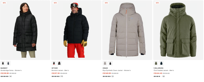 主打品牌:始祖鸟 (Arc’teryx)、Canada Goose (少量清仓款)、Sorel。