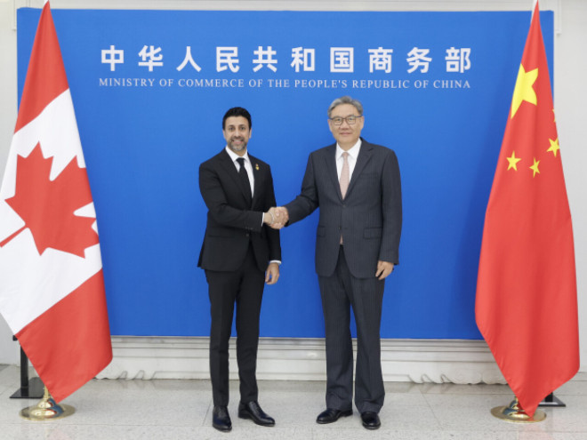 商鹏飞与麦克勒姆随后在钓鱼台国宾馆会见了中国国务院副总理何立峰。在开场致辞中,何立峰表示,此次会晤是在今年1月卡尼与习近平主席会面所制定规划基础上的关键一步。“通过那次会晤,我们的双边关系以及经贸联系在经历多年低点之后,都已经重新焕发活力,这一点确实让我们感到非常高兴,”他说。“我们非常高兴看到你们来到北京。我相信,只要我们遵循两国领导人所确立的指引,我们的经贸关系一定会取得长足发展。”